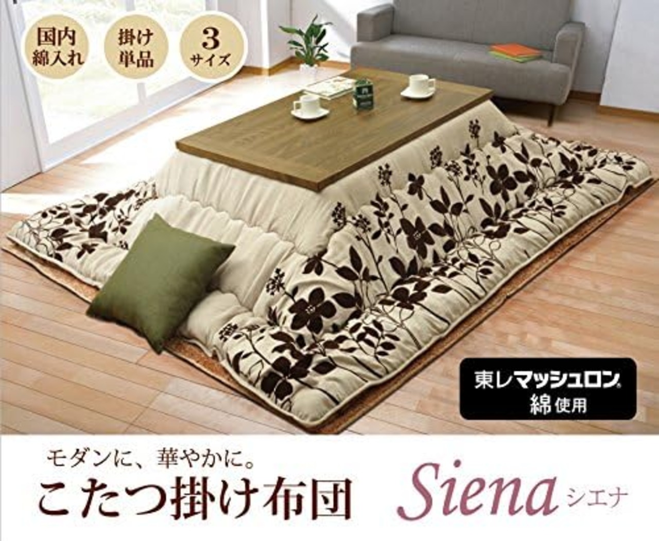 イケヒコ こたつ布団 長方形 シエナ 約205×245cm ベージュ モダン リーフ 厚掛け 日本製 #5173339