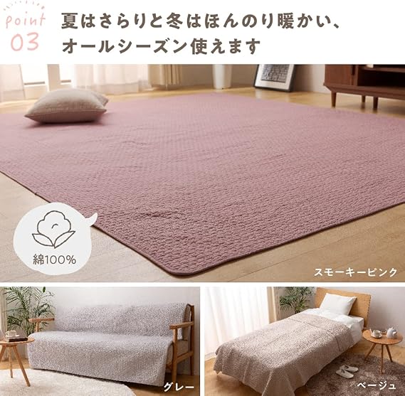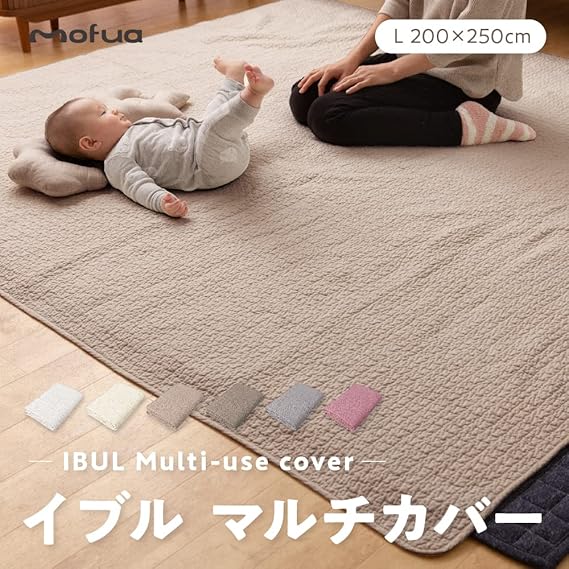 【特長】韓国のお布団「イブル」をモチーフに、くもの形のキルティングを施したぽこぽこ感がかわいい綿100%のマルチカバー。lサイズはラグカバーやソファーカバー、こたつの上掛けなどマルチに活躍。