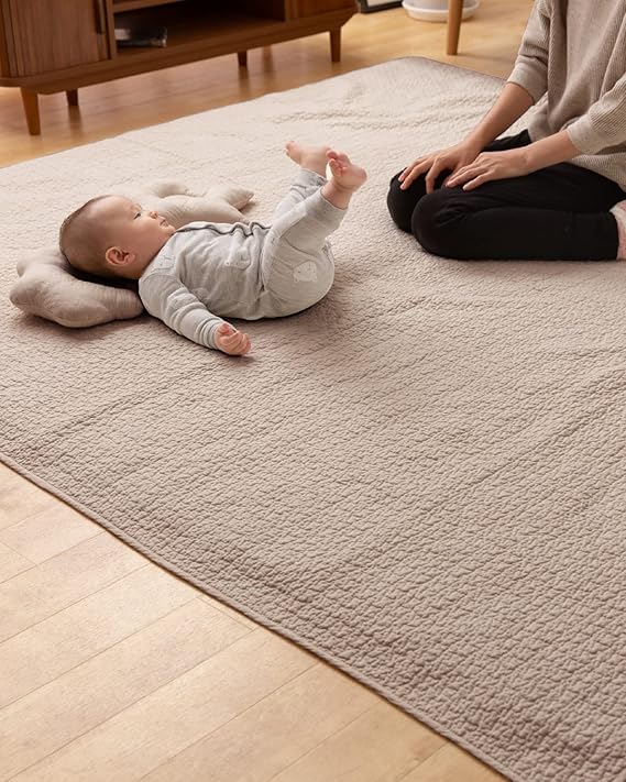 ナイスデイ mofua(モフア) イブル マルチカバー キルティングマット ベージュ L (200×250cm) 綿100% cloud柄 キルティング ラグカバー ベッドカバー ソファーカバー プレイマット ベビー 低ホルム 乳幼児基準 洗える 36204305