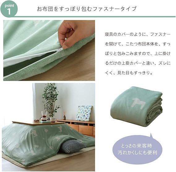 イケヒコ こたつ布団カバー 長方形 ホース 約195×245cm グリーン シンプル 洗える ファスナー #5190529