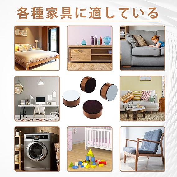 【高さ調節】色々な場合で使え、鉢植え、ベッド、デスク、テーブル、椅子にも役立ちます。低めのソファー取り付けて、ベットが低く収納場所の有効活用でき、強度もあり、頑丈です。床面に傷防止の仕組みがあります。鉢植えの木や植物の排水や通気にも役立ちます。