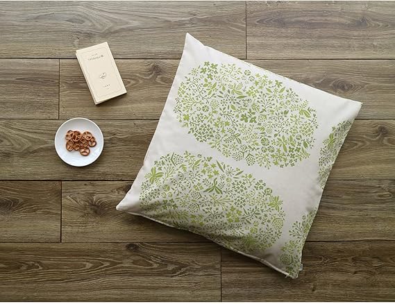 クォーターリポート 綿麻素材 ざぶとん ( 座布団 )カバー パラディス グリーン 約55×59cm 銘仙判 花柄【 日本製 】