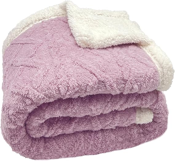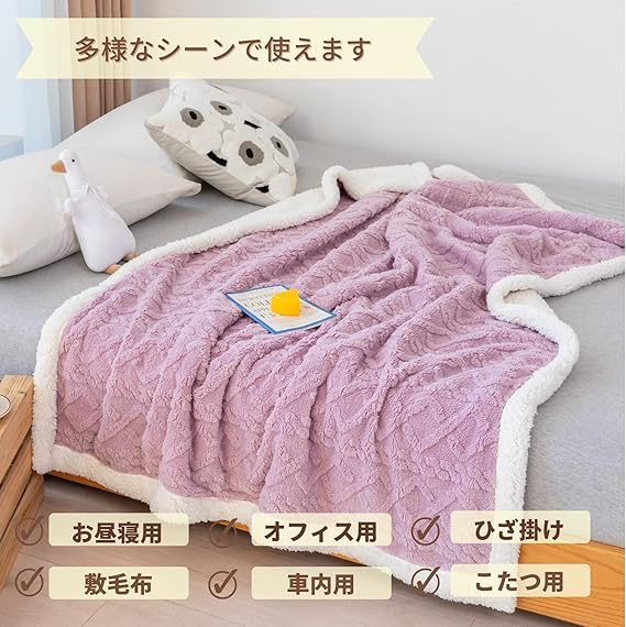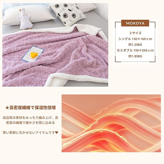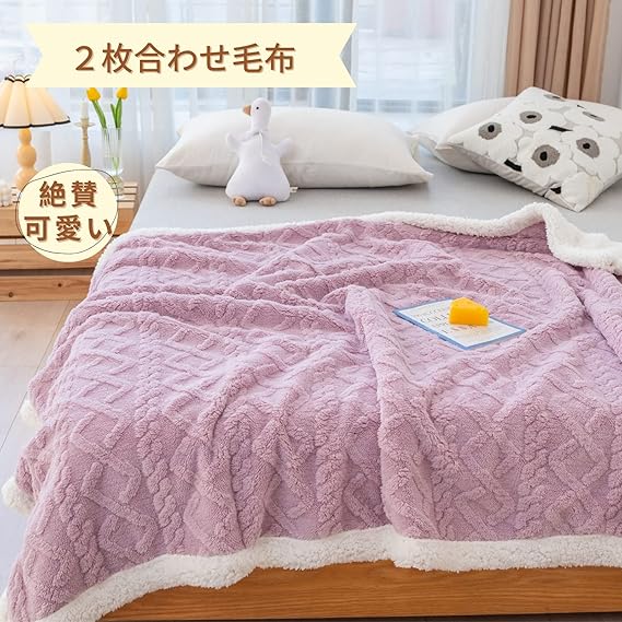Mokoya 毛布 シングル 冬 厚手 130×160cm 2枚合わせ ブランケット 北欧風ボア 可愛い 膝掛け 大判 軽量掛け毛布 抗菌防臭 防ダニ 静電抑制(ラベンダー)