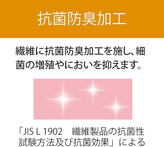 抗菌防臭効果:繊維に抗菌防臭加工を施し、細菌の繁殖やにおいを抑えます