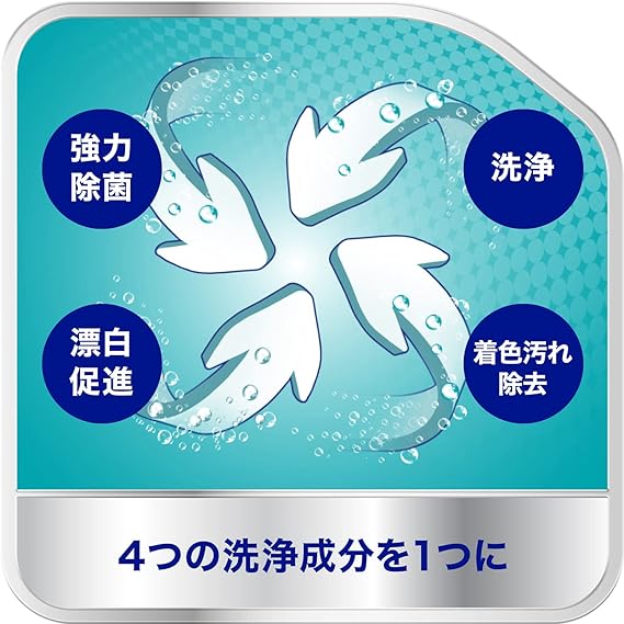 4つの成分を1錠に配合した入れ歯洗浄剤。強力除菌・速効洗浄・漂白促進・着色汚れ落とし