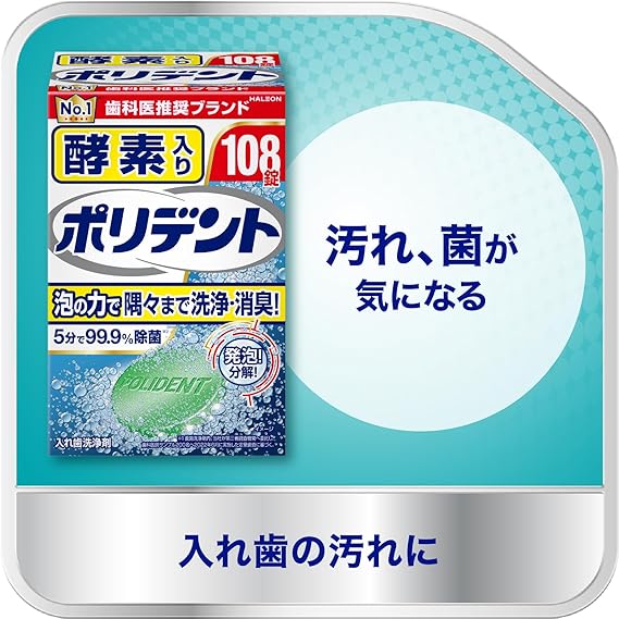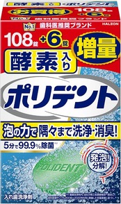 ポリデント 酵素入り 入れ歯洗浄剤 108錠+6錠増量品 99.9%除菌