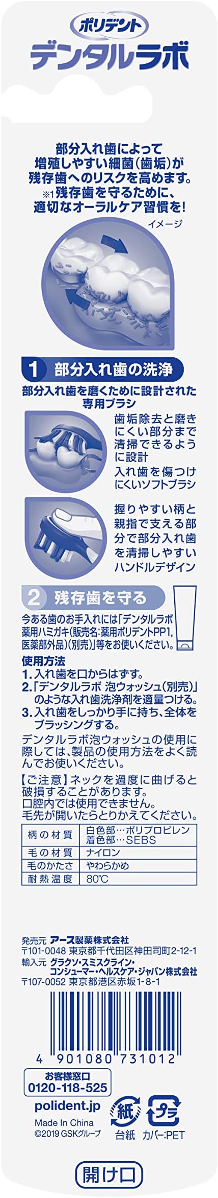ポリデント デンタルラボ 部分入れ歯専用ブラシ (色はお選びいただけません)