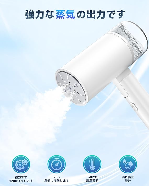 【急速加熱】この蒸気機関の出力は1200Wで、わずか25秒で急速加熱することができます。この携帯用スチームアイロンは、チタニウムを加熱することで、いつでも服からシワを取り除くことができます。
