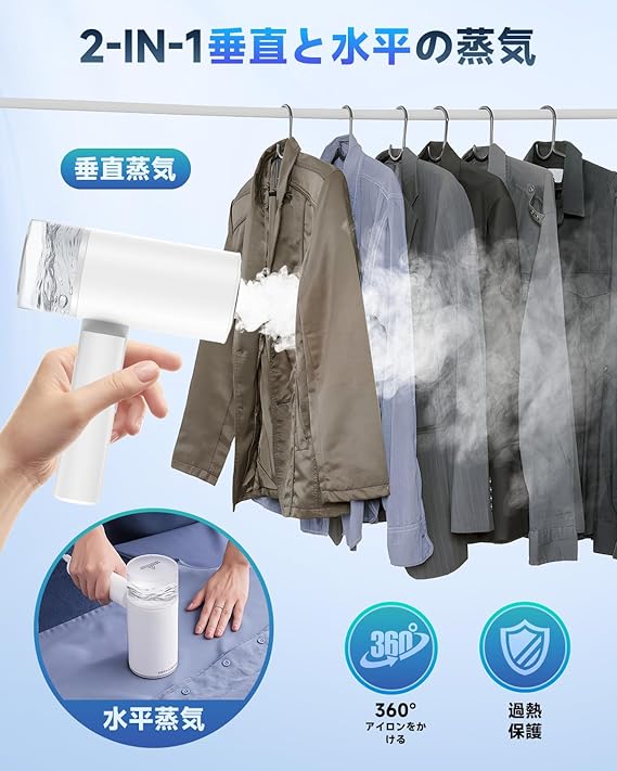 【様々な生地に適しています】この服の蒸気机器は垂直と水平の2種類の蒸気方式をサポートして、柔軟に異なる位置で服を蒸気することができます。このスチームウェアは、シフォン、ウール、コットン、リネン、ナイロンなど、さまざまな織物の折り目を効果的に取り除くことができます。
