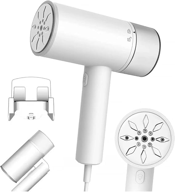 スチーマアイロン スチームアイロン 衣類ー ハンガーにかけたまま シワ伸ばし パワフル 25秒立ち上がり 水漏れ防止 小型 軽量 コンパクト 携帯用アイロン装備200ml水タンク、25s急速加熱、302℉高温除菌消臭、家庭用とオフィス用の折りたたみ織物のしわ取り剤、白、ブラシ付きです