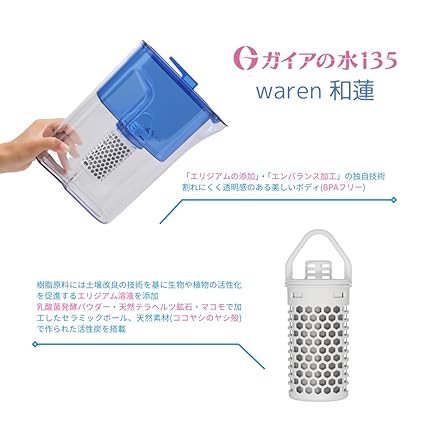 ガイアの水 浄水器 和蓮ポット ガイアの水135 カートリッジ付き water filter PFOS/PFOA除去対応 BPAフリー (ホワイト)