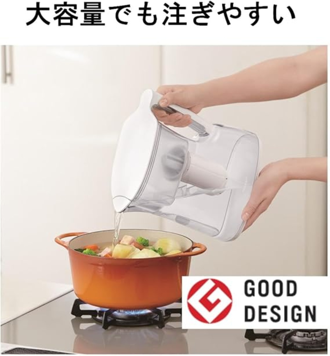 高速ろ過/時短浄水、大容量2.1L、取っ手付き、高除去タイプ、丸洗い可能、グッドデザイン賞受賞、有機フッ素化合物(PFOS/PFOA)除去