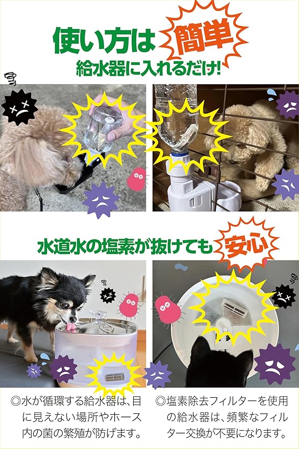 Cufiber 携帯浄水器 ペット用 Cu-water クウォーター 【動物健康管理士推奨】 500ミリリットル用 塩素除去 銅繊維 浄水ポット 浄水ボトル 給水器 給水ボトル 水飲み器