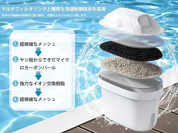 高品質な浄水カートリッジ:必要なミネラルを保持するとともに、色んな不純物を効果的に除去します。小