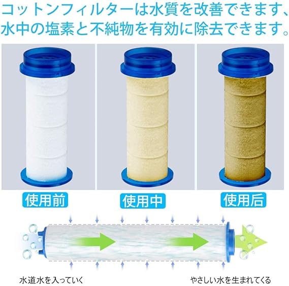 【塩素除去】 :交換フィルターに亜硫酸カルシウム/粒状活性炭を入れることができます。不純物を取り除く以外に、 水中の塩素、細菌、重金属をより効果的に除去し、より純粋で柔らかい水を作り出します。