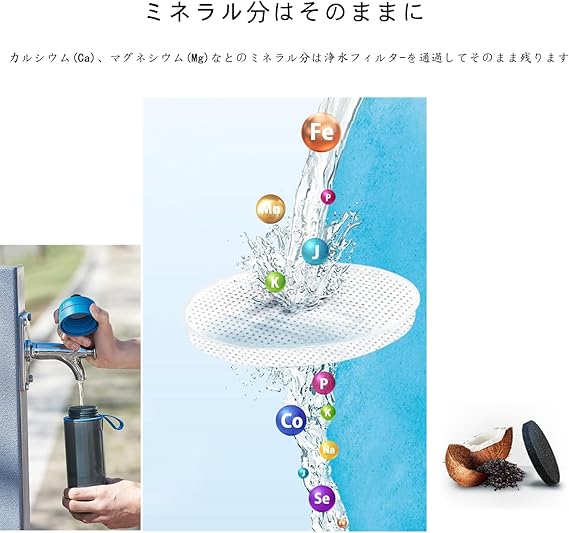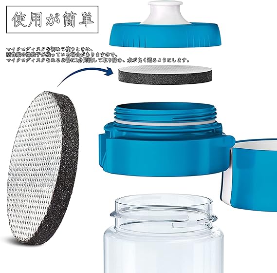 【高性能マイクロディスク】カルシウムやマグネシウムなどのミネラル分はそのままに、水道水に含まれる殺虫剤、除草剤、環境ホルモンなどの微量不純物も取り除きます*2。除去物質はマイクロディスクと浄水器本体との組み合わせにより異なるため、ボトルは15項目、カラフェは12項目*となります。