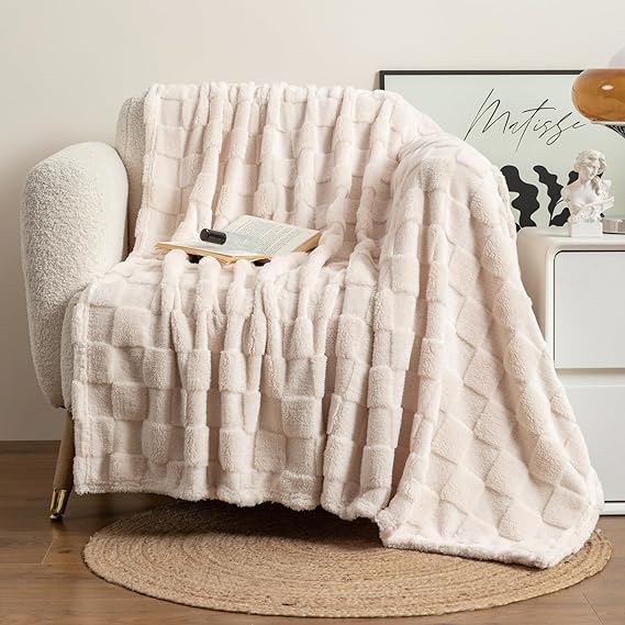 Mokoya おしゃれ ブランケット チェック柄 フリース 毛布 シングル 130x160cm もこもこ 暖かい 掛け毛布 柔らかい 膝掛け 大判 冷房対策 通年使用 (白)
