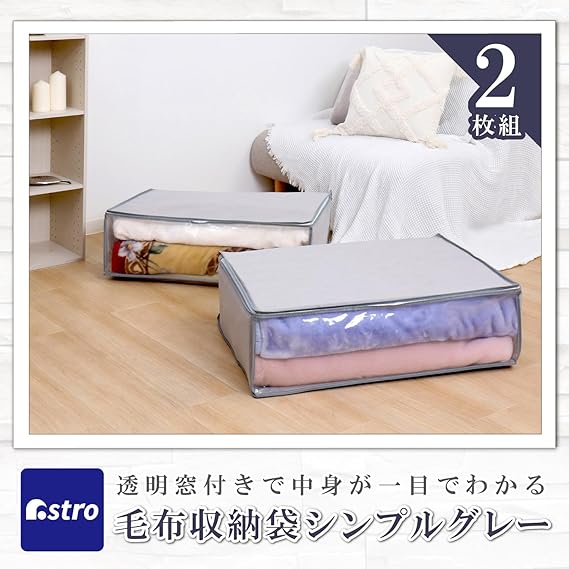 アストロ 布団収納ケース 毛布 軽寝具用 2枚組 グレー 通気性の良い不織布製 布団収納 布団袋 収納ボックス 収納袋 引っ越し クローゼット 押し入れ 167-02