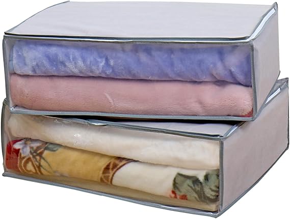 【通気性に優れた不織布製】:毛布やタオルケットや薄手の掛け布団などを湿気やホコリから守り大切に保管。