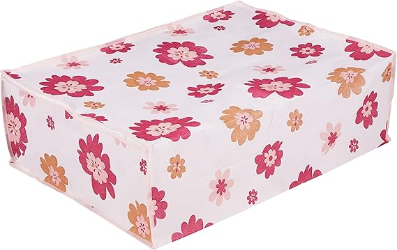 【商品仕様】:サイズ/約幅70×奥行53×高さ23cm、カラー/ホワイト、柄/花柄、内容/3個、収納目安(1ケースあたり)/厚手毛布:約2枚・薄手毛布:約3〜4枚、材質/ポリプロピレン・ポリエチレン