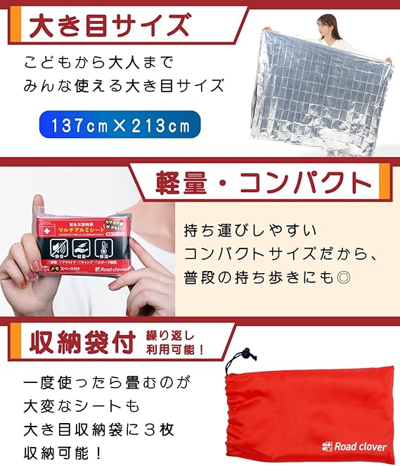 サバイバルシート アルミシート 防災 防災グッズ 【防災士監修 緊急時ガイド付】 カサカサ音少ない Road clover (1個)