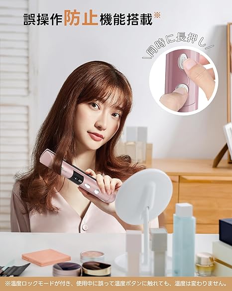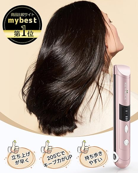 KEYNICE コードレスヘアアイロン ストレート メンズ ミニ 2way カール 長時間使用 usb充電式 Max205℃ 3段階温度調節 持ち運び 小型 ワイヤレス ポーチ付き 美容 新KN-2606 ピンク