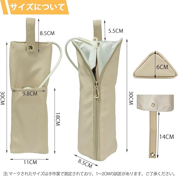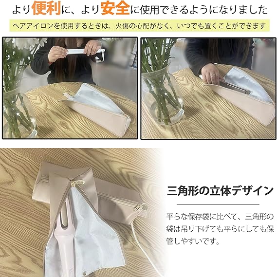 ヘアアイロン ケース 収納 【使ってスグ収納】ヘアアイロンポーチ 耐熱 300度 吊り下げ 持ち運び 可愛い ミニア 旅行 耐熱素材 コード収納ポケット付き (ベージュ)
