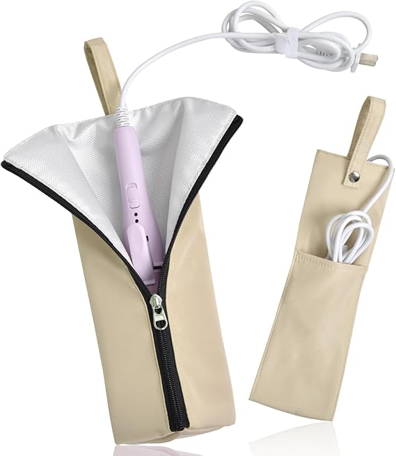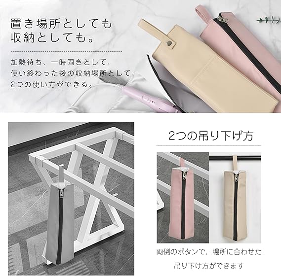 Ganve ヘアアイロン 収納 ヘアアイロン ケース 耐熱 ヘアアイロンケース 吊り下げ収納 可愛い 人気 熱いまま ヘアアイロン 耐熱ケース ヘアアイロン 旅行用 收?袋 ケース ヘアアイロン 持ち運び 旅行 アプリコット