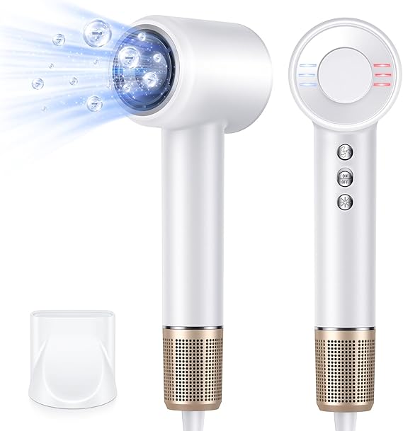 Bopwavy ドライヤー 速乾 大風量 【3億マイナスイオン 120000RPM】人気 ランキング 美髪 高風速ドライヤー 1〜2分速乾 ヘアケア 12モード 低温 静電気防止 ブラシレスモーター 1300W ノズル付き コンパクト ギフト プレゼント 家庭用 サロン用 PSE認証済み(White)