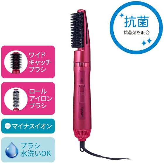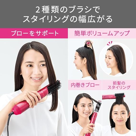 幅広のワイドキャッチブラシと、360度ピンのあるアルミ素材のロールアイロンブラシが付属。ブラシを使い分けることで、根元のボリュームアップやくっきりカールなど、幅広いスタイリングができます。