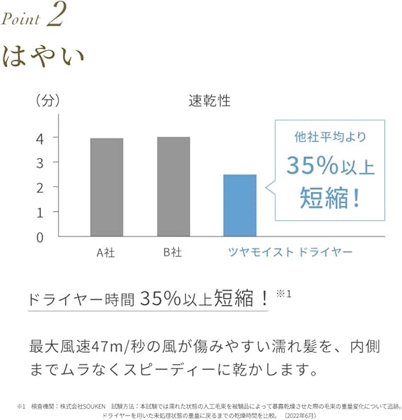 パワフルな風で、乾かしにくい髪の根元や頭皮までスピードドライ!