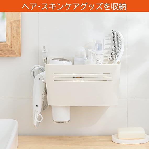 【ドライヤー・ヘアアイロンホルダー】:洗面所などにてドライヤーやヘアアイロンをスッキリ壁掛け収納できるケース。
