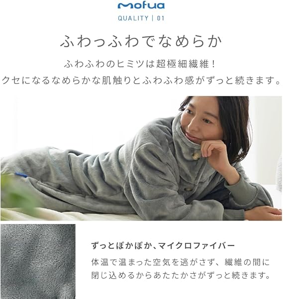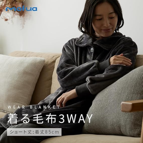 AQUA (アクア) 着る毛布 かいまき 男女兼用 冬 あったか 3Way 襟付き ハイネック タイプ 動きやすい ショート丈 チャコールグレー mofua (モフア) プレミアムマイクロファイバー ルームウェア モフモフ ふわふわ レディース メンズ 家事がしやすい 袖口ゴム仕様 静電気対策強化 (旧社名:ナイスデイ) 45486568