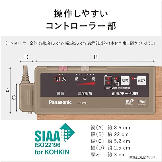 2面切り替え3通り暖房。消費電力量約30%省エネ(省エネモード時)。待機電力ゼロ。