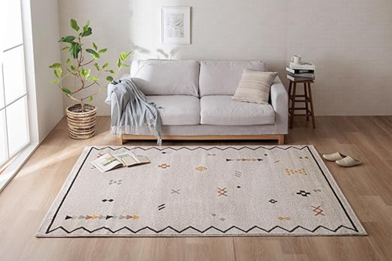 イケヒコ ラグ カーペット マット 長方形 輸入 ネカル アイボリー 約133×190cm デザイン ウィルトン 長方形 北欧柄 幾何柄 # 1321690010201