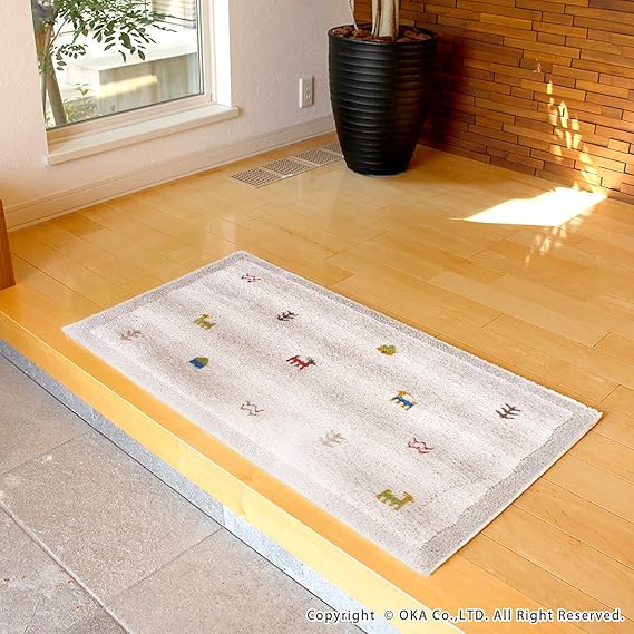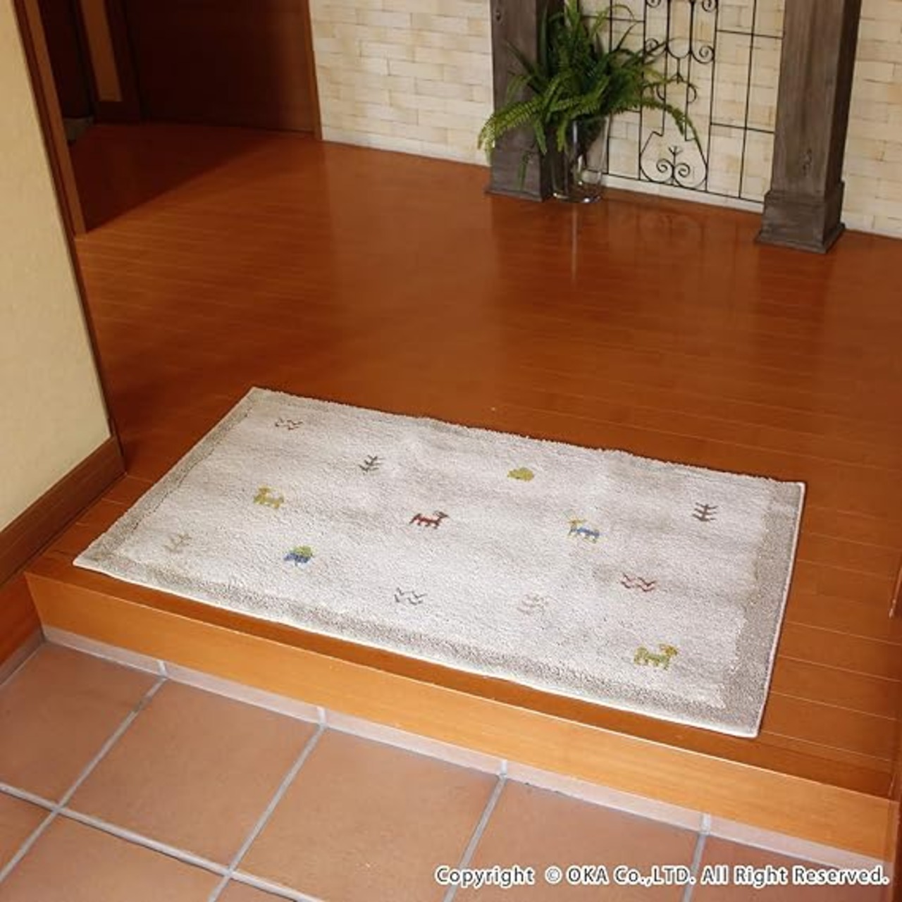 オカ(OKA) 玄関マット ベージュ 約60cm×110cm 洗える コーナー吸着 ギャベ 吸着 すべりどめ