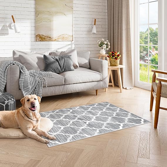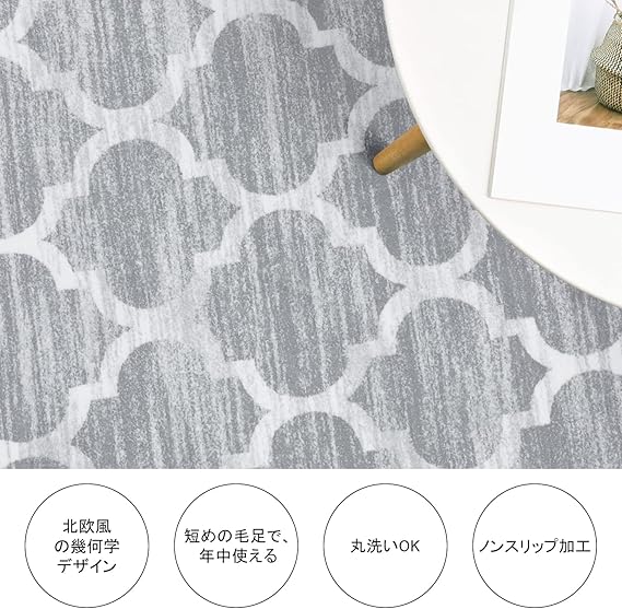 HAOCOO カーペット 洗える 約1畳 ラグ 90х150cm オールシーズン適用 ホットカーペット対応 北欧 ウール ふわふわ すべり止め 低反発 防音 抗菌防臭 リビング ダイニング ラグマット アンティーク モロッコ柄 グレー