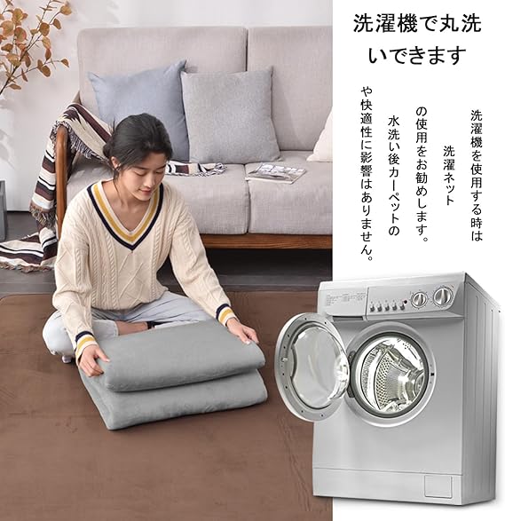 【通気性が良い】このラグマット2畳の内側の素材は、通常のポリウレタンよりも通気性と透水性に優れています、じゅうたん内側のウレタン厚約5mm、暑い夏に座っても蒸れない、通気性優れて。ご家庭で洗濯もでも