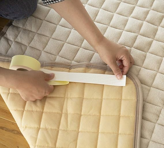 マットの裏に貼るだけで滑りを防ぐ、すべり止めテープです。