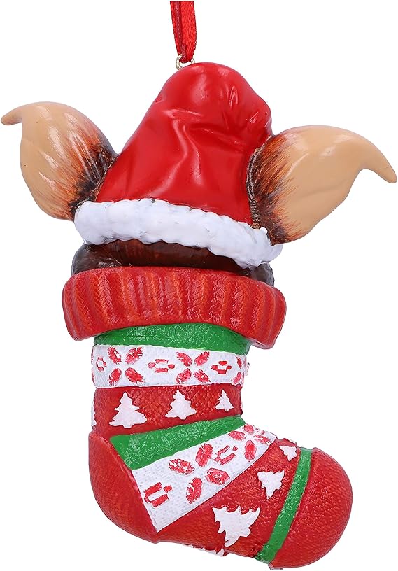 Nemesis Now Gremlins Gizmo in Stockingハンギングフェスティブ装飾オーナメントクリスマス用、レッド、12cm