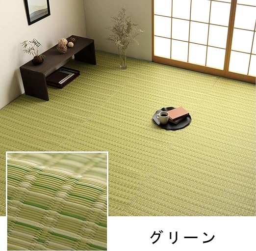 イケヒコ 『バルカン』 肌触りの良い国産 畳 マット 団地間6畳 グリーン 傷がつきにくく引っ掻き傷にも強い丈夫なPP素材で作ったカーペット 水こぼしや汚れに強くてお手入れ簡単な洗えるラグ 夏は肌に密着しにくくベタつかない キャンプ・花見などアウトドアでも活躍 畳上敷き 畳 へこみ 防止ラグ 防音マット フロアマット カーペット 6畳 日本製 洗える #2150036