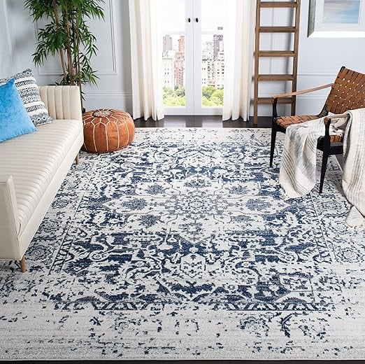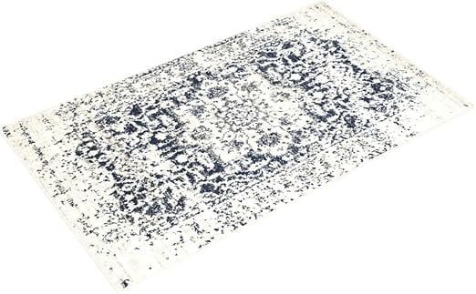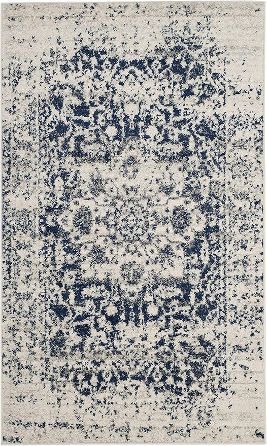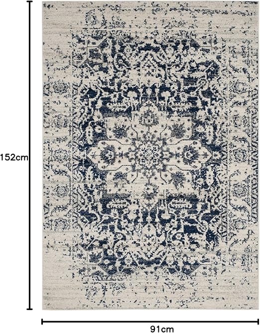 SAFAVIEH (サファビア) ニューヨーク発 Madison Collection (マディソンコレクション) アクセントラグ クリーム/ネイビー 91×152cm オリエンタルメダリオン スノーフレーク ディストレスド加工 毛が抜けないタイプ リビング/ベッドルーム 【日本正規輸入品】 MAD603D