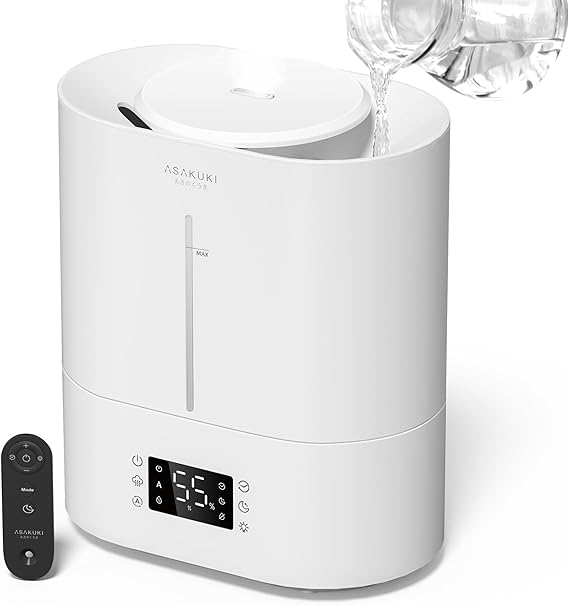 ASAKUKI 加湿器 卓上 大容量4L 超音波式 アロマ対応 自動湿度調整 40時間連続稼働 上から給水 静音 タイマー 睡眠モード ナイトライト 空焚き防止 ミスト量3段階 加湿量最大200ml/h 18畳対応 リモコン付き 寝室用 乾燥対策
