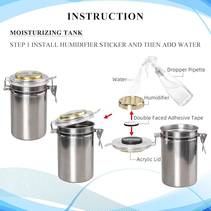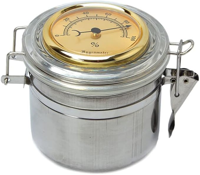 MUXIANGパイプタバコジャー缶ステンレス鋼シガーヒュミドール湿度計と加湿器付きCG0009(小)