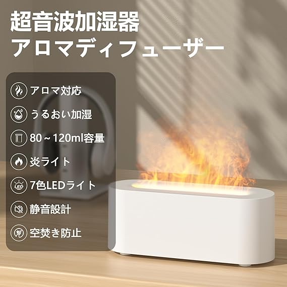 【アロマ対応&7色LEDナイト】水タンクにアロマオイルを数滴たらせば、心地よい香りに包まれて心身を癒されます。ライトは7色循環モードと単色モードを搭載されます。幻想的なナイトライトでお部屋のムードを高めて一日の疲れを取り、穏やかに眠りましょう。
