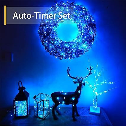 LEDイルミネーションライト 電池式 ワイヤーライト 10m リモコン付 8パターン 100電球 点滅 点灯 タイマー機能 防水 ストリングライト ハロウィン 飾り クリスマスツリー 電飾 パーティー 新年 結婚式 装飾 誕生日 屋内屋外使用可能(ブルー 2個セット)