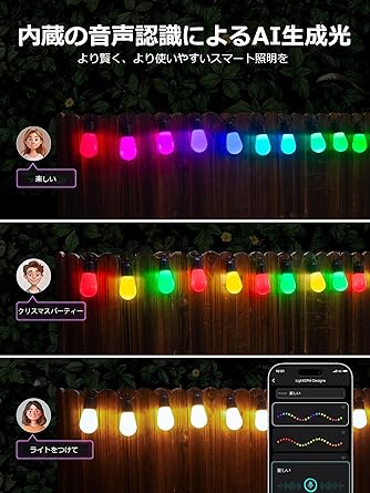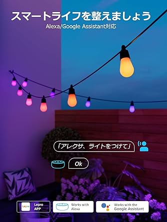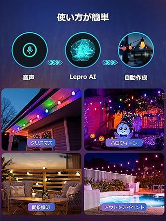 Lepro AI ストリングライト ZB1 led イルミネーションライト コンセント式 音楽同期 スマート アプリ調光 調色 フェアリーライト 電飾 16.6m S14 15球 電球色 RGB フルカラー ガーデン IP65 防水 屋内 屋外 虹色 ハロウィン クリスマス カフェ レストラン Alexa&Google Home対応/WIFI&BlueTooth接続 Leproアプリ登録要