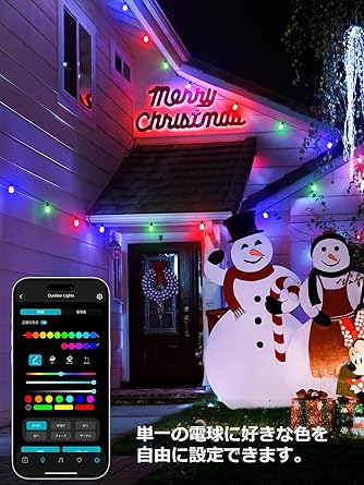 【商品仕様】ケーブル全長:16.6m │ LED電球数:15個 │ 電球形状:S14 │ 光色:電球色+RGB色 │ 全光束(明るさ):700lm │ 給電:DCアダプター │ 防水:ケーブルとライト部分はIP65防水仕様(アダプターは非防水仕様) │ パッケージ内容:ストリング16.6m15球*1、コントローラー*1、アダプター*1、説明書*1 │ ご注意:製品を利用するために、「Lepro」アプリでアカウント登録要。