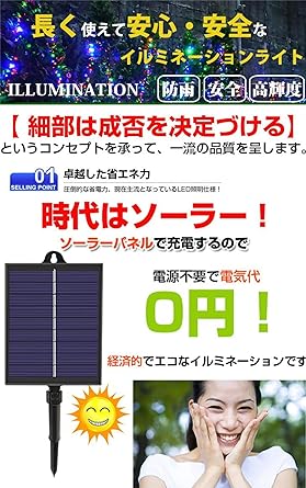 Sibling イルミネーション ソーラー ストレート クリスマスライト LEDクリスマスライト 屋外イルミネーション イルミネーシ 定番商品 300球 30m 防雨 コントローラ付 夜間自動点灯 メモリ記憶 8点灯パターン 保証付 クリスマス装飾 ソ 自動ON/OFF 自宅 玄関 ベランダ おしゃれ 庭 (4色ミックス(赤青緑黄))