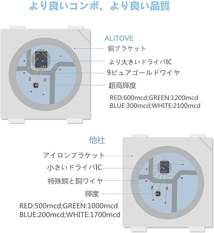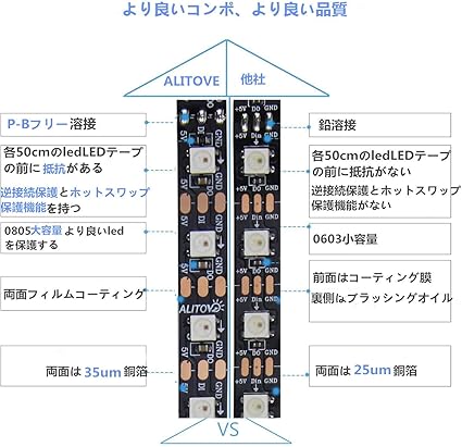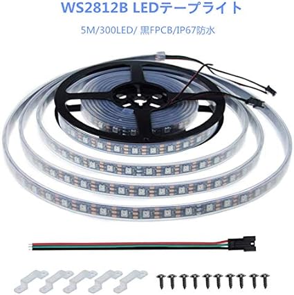 ALITOVE LEDテープライト WS2812Bアドレス可能 5050RGB SMD 5m 300個ピクセル夢色 防水 黒いベース イルミネーション ledライト DC 5V